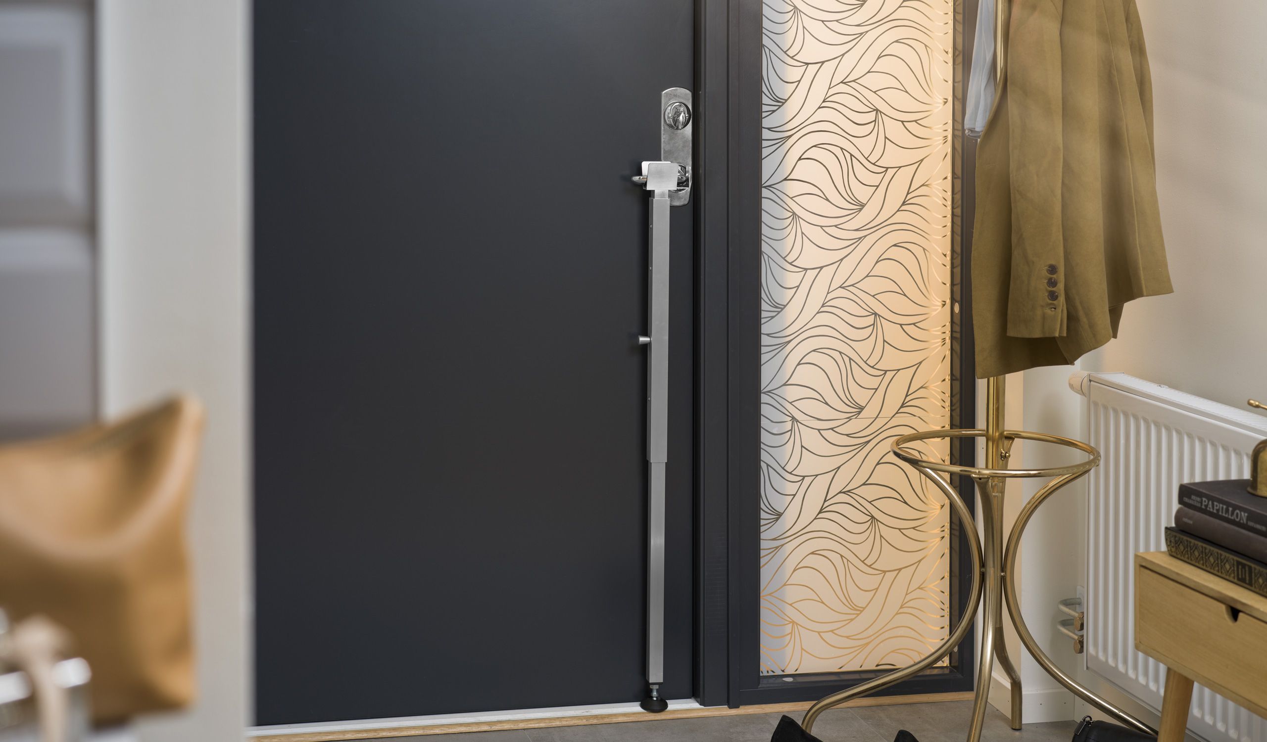 Tor Safety Post är en svensktillverkad portabel dörrbarriär som snabbt skapar en extra säkerhetsnivå för off entliga verksamheter, skolor, skyddade boenden och privatpersoner som vill öka sin trygghet i vardagen. Stolpen placeras under dörrhandtaget och hindrar dörren från att öppnas från utsidan. Den är enkel att använda, kräver ingen installation och sätts på plats på några sekunder.
